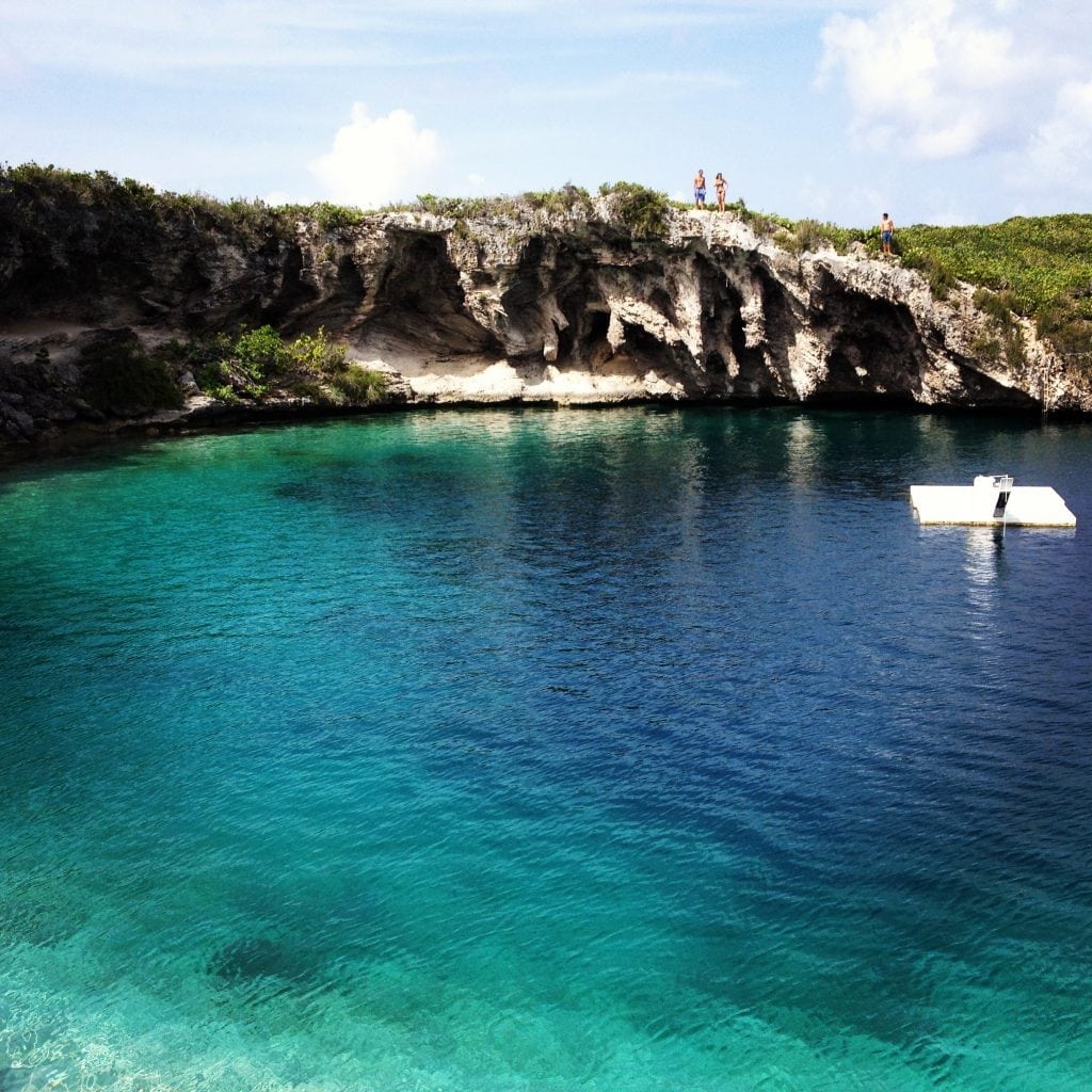 Jumping into Dean’s Blue Hole in Long Island, The Bahamas