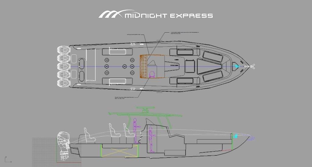 Conceived with performance and efficiency in mind, Midnight Express’ Quintessence43 was named for its groundbreaking five 400-horsepower Mercury racing outboard engines set up with surfacing props and Sport-Master drives. By launching Quintessence43 in June, Midnight Express has extended its engineering acumen, reinventing the performance experience of its five-engine boats—the company introduced its five-engine outboard designs in 2007—with its two-lever control system, the ErgoEngine Control. The design, and having only two levers to maneuver, allows for simplified operations with speeds that can exceed 190 mph (78+ knots). This turnkey solution for advanced five-engine control offers an additional bonus: it takes just one key to start all five engines.