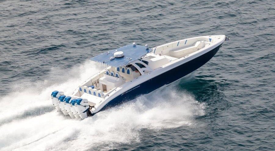 Power: Five 400-hp Mercury Verado’s/Sportmaster Gearcases