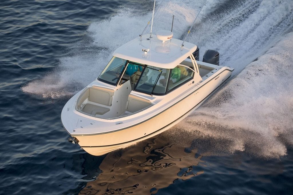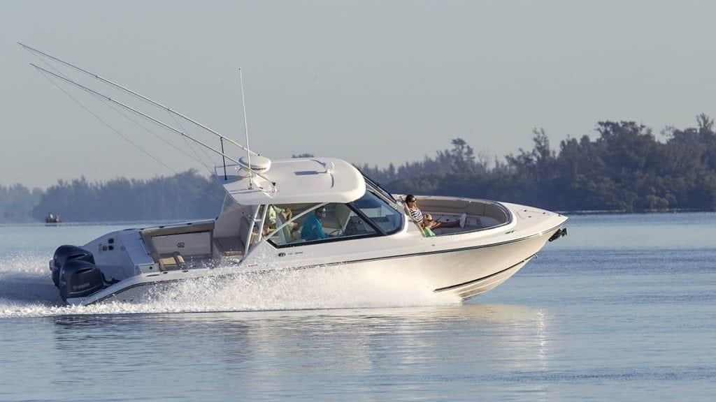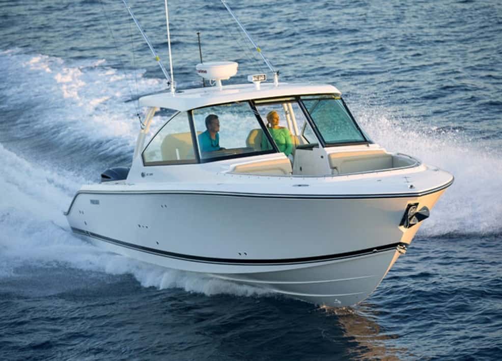 The DC 325 is constructed with a fully integrated fiberglass hardtop, tempered glass windshield system, and hand-laminated hull. The Pursuit Protection plan provides a five-year Hull and Deck Structural warranty, a five-year Blister Free warranty, and a two-year Limited warranty.