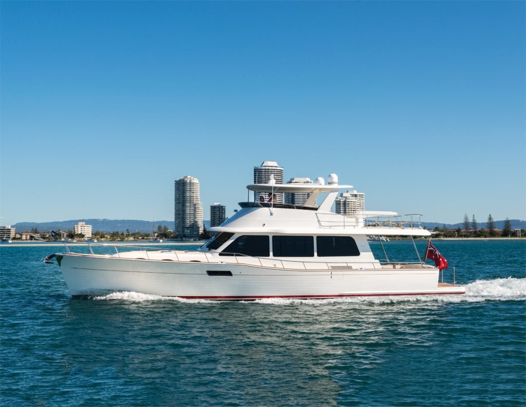 At the head of Palm Beach Motor Yachts is Mark Richards, a famed America’s Cup yachtsman and holder of multiple sailing records who applied his knowledge of high-performance sailing yacht design and materials for lightweight yet strong construction. In 2014, Grand Banks Yachts acquired Palm Beach Yachts and named Richards to run both companies, with his promise to build high-quality, high-tech cruising boats under the Grand Banks brand. Richards kept his promise.