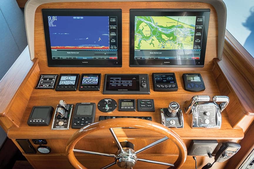 As we continued to cruise, the GB60’s ride reminded me of the sea trial I took seven years ago, hardly a surprise, since Richards incorporated the same style hull on the GB60. However, the GB60 is the first in a line of fully infused carbon fiber construction boats, resulting in a low center of gravity. This provides for stability at all speeds, and offers advantages in strength, rigidity, weight, and performance. In addition, a Seakeeper 9 stabilizer makes the GB60 just as comfortable at anchor, with little sway or roll. Richards did more than make good on his promise to build high-quality, high-tech cruising boats. By all accounts, the GB60 delivers more of what cruisers want, with astounding fuel economy to boot.