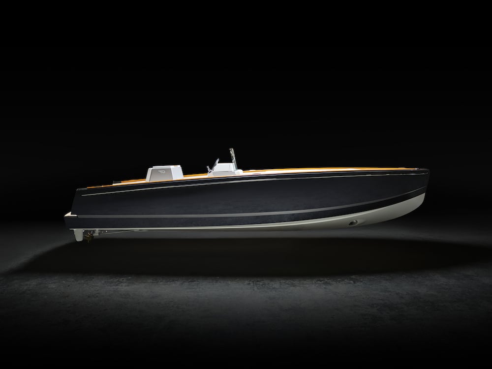 Borrowing her name from the game-changing, original Picnic Boat, hull #1, sports a carbon-epoxy composite hull shape designed by Michael Peters. The boat is hand-painted, lightweight and crafted from composite artisanal teak, ensuring every ounce of weight has been shaved and sculpted. Titanium hardware and console details were both 3D printed to achieve shapes and a level of precision unavailable in typical construction methods.