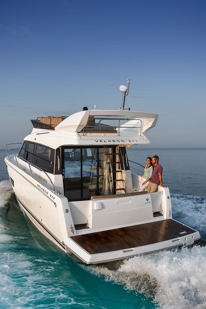 The Jeanneau Velasco 37 Flybridge offers two fully equipped helms for double the pleasure.