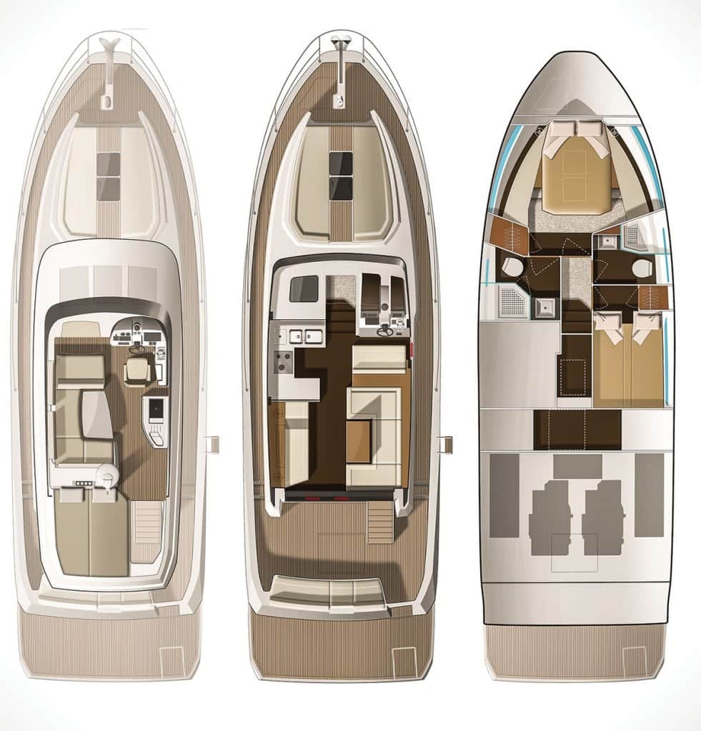 Like sister brand Beneteau, Jeanneau is well known for crafting high-end production sailboats such as the Sun Odyssey series. Powerboats are quickly becoming a focal point for the French boat-building powerhouse, however, and it’s easy to see the smarts behind this strategy. Sailing enthusiasts can be a superstitious lot, and as they look to make the trade from sail to power, brand loyalty often enters into play.