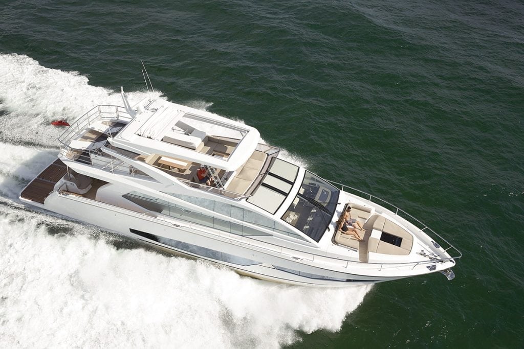 With its huge flybridge and celebrity-designed interior, the Pearl 80 is right at home in South Beach.