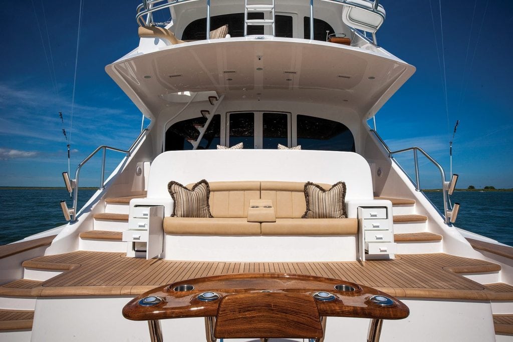 Aiding that ability is her amazing performance—Captain Higgins had her up and running at a cruise speed of 30 knots with a fast cruise of 32, and she topped out at an impressive 37.2 knots at 2450 rpm in troubling four-to-six foot seas, and into the wind and current. During backing down maneuvers she pirouetted like a prima ballerina. In fact, I actually had to look out at the conditions to remind me we were in this kind of turbulent water. Of course, the Seakeeper M35 Gyro was of great help in keeping us rock steady.