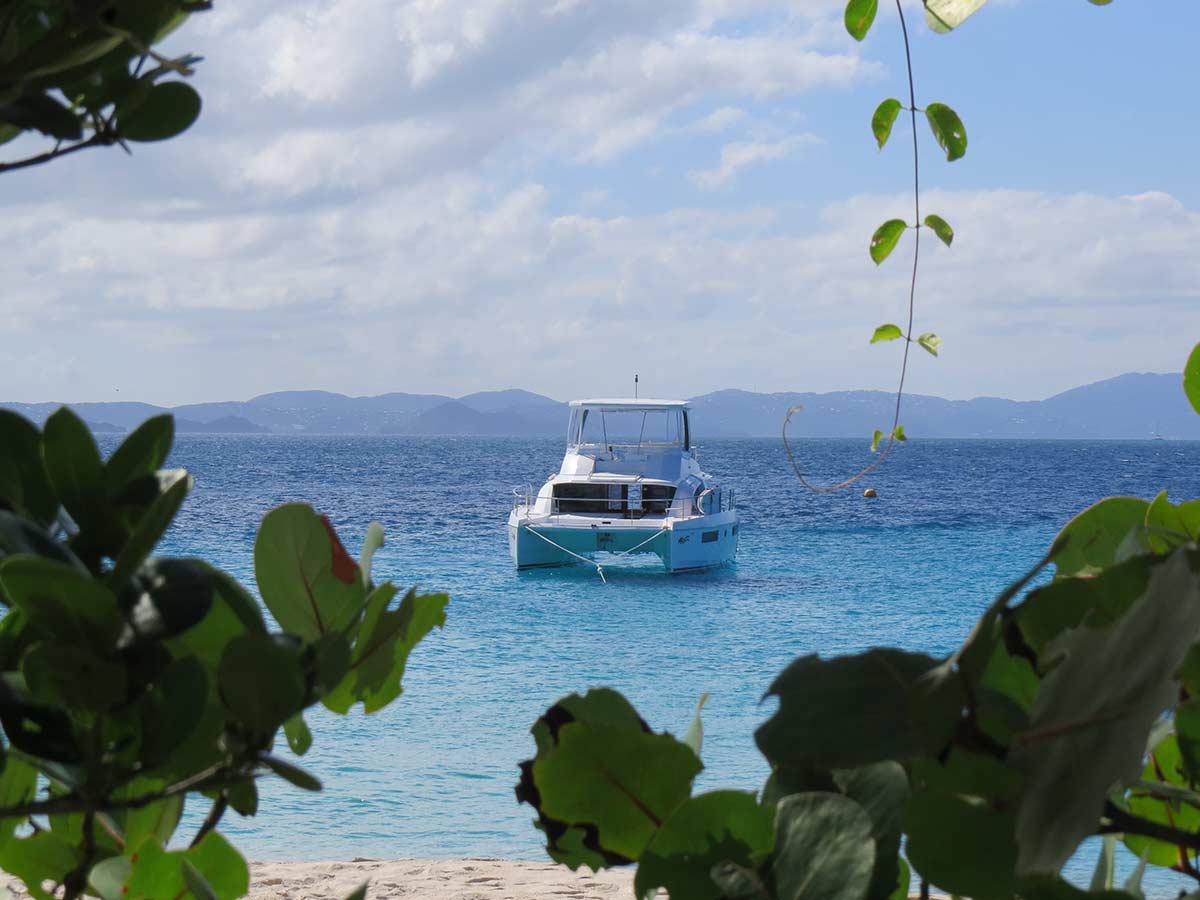In a way, it was a double conversion. Not only were we blow-boaters on a stinkpot, but one with two hulls at that. It was going to take some getting used to, all this space and speed and simplicity. Welcoming the chance to review a 2016 model power catamaran, we chartered a Moorings 433—a Leopard 43 with three cabins. We picked up our boat at The Moorings charter base in Tortola, quite possibly the busiest in the world. Our brand-new owner’s version was named Rubis (French for ruby), and she was already hinting at her gemlike qualities.