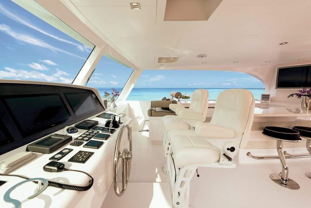 “A comparable motoryacht’s going to have C32s in it, so you’re burning at least fifty percent less fuel. Then you have the maneuverability because with the motors being so far apart, you can spin the boat on her own axis. With the thrusters, you can walk her sideways. It’s very easy to operate; you don’t need a highly-skilled, trained captain to manage the boat. If you have a few experiences on the boat, you become quite comfortable very quickly,” he says. “And then there’s the space. You really feel you can live on the boat. There’s lots of privacy.”