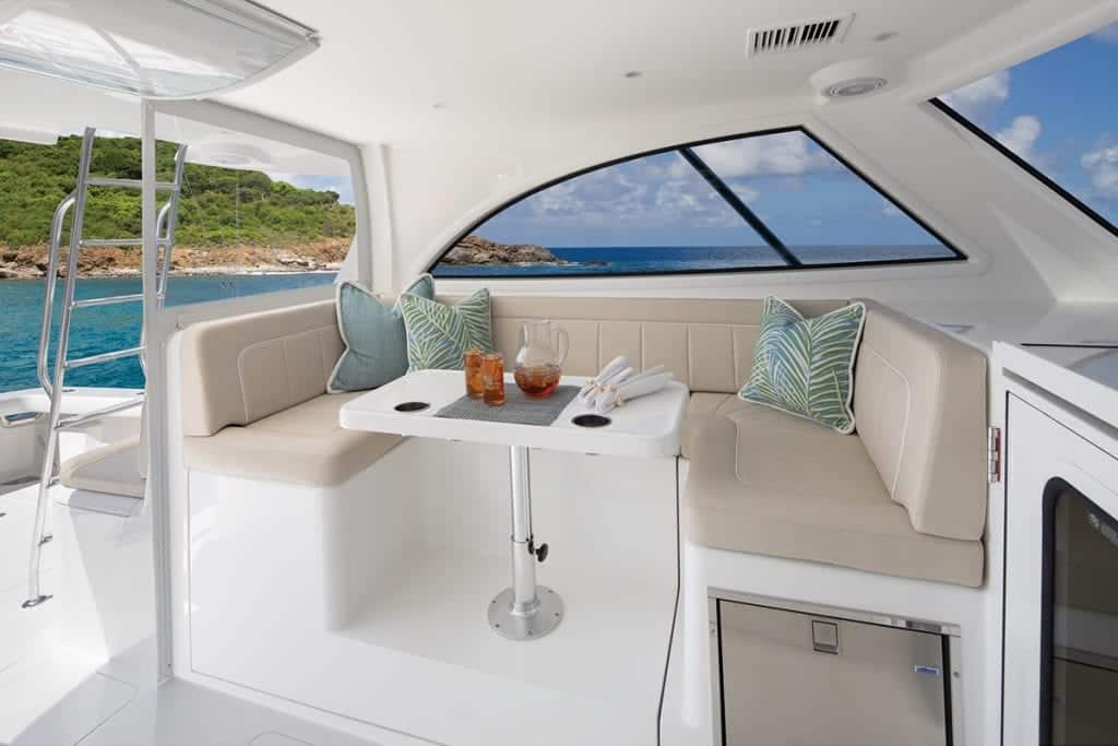 The command deck is especially inviting after returning to the dock and serves as a social area that makes the boat very flexible in its mission as both a capable hardcore fishing boat and family cruiser.