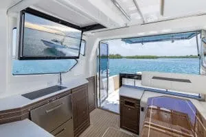 As I said, there is so much on this new model that you could easily spend long weekends on board doing everything from fishing to hanging at the sandbar to cruising local islands and reefs. The enclosed cabin protects you from the elements, the built-in entertainment and fishing features make time slip away, and the comfort zones lend to longer times on the water.