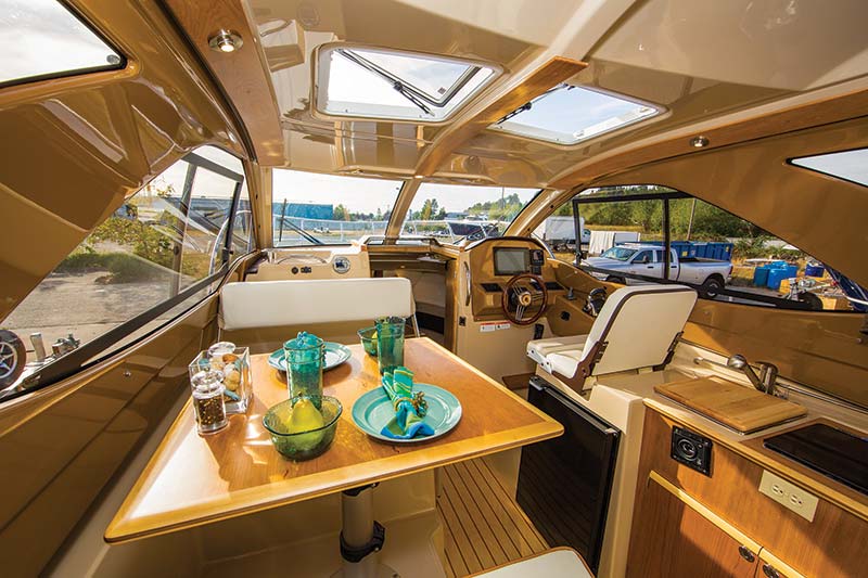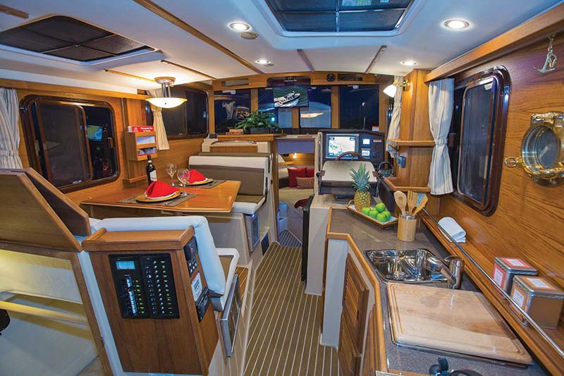 A creative use of space and innovative engineering are certainly keys to Fluid Motion’s success. But so is the company’s ability to form an owner community around its brands with active rendezvous, alumni cruises, raft-ups, weekend parties, and factory visits. At least 250 people showed up at last year’s annual rendezvous at Roche Harbor in the San Juans. The Tugnuts website (tugnuts.com) promotes all of these activities as well as troubleshooting and maintenance—their forums go on for 681 pages. As a result of all this involvement, owners tend to be happy. Todd Banks, president of Kenmore Air in Seattle, started out with a Ranger 27 and is now a partner in a Ranger 31. Regarding an annual 10-day cruise to Canada’s Desolation Sound with his wife and three teenagers, he says, “[it’s] definitely the highlight of the summer. Everybody looks forward to it.” And there’s plenty of room for the family. The two boys sleep in the aft cabin, the daughter on the convertible dinette, and Banks with his wife, Jane, in the master forward. “We cruise and then drop the hook in different spots, fishing, swimming, exploring. It’s all a great family outing,” he says. “And Ranger is a first-class operation with first-class people.”