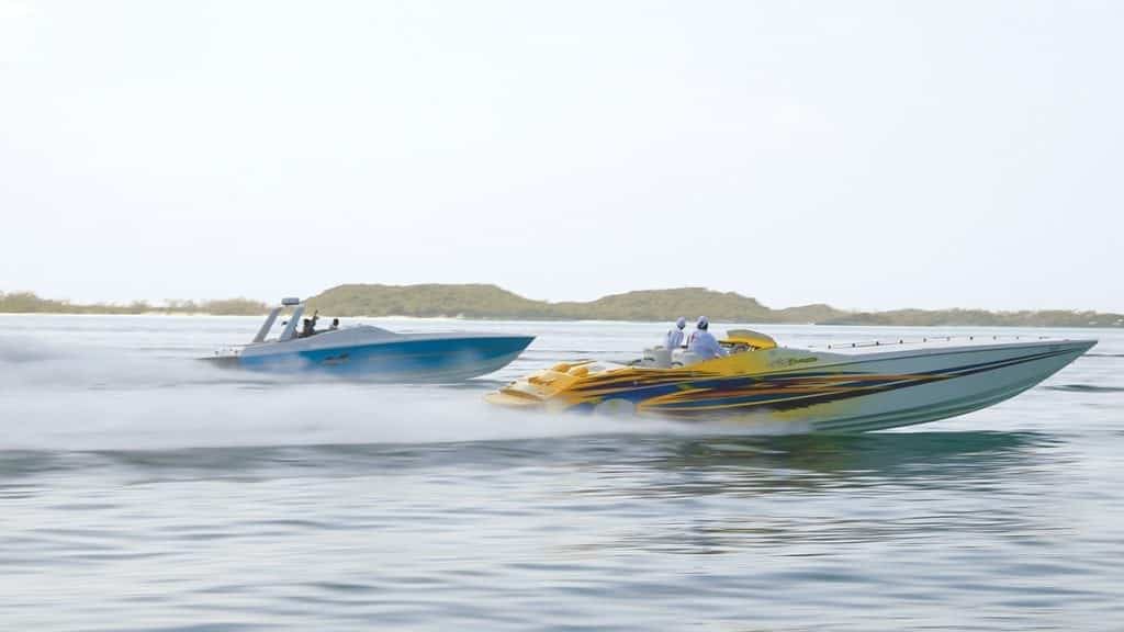 Carolyn Cartwright, the manager at Highbourne Cay, says the arrival of boats at the Highbourne Cay Marina creates an entertaining spectacle for marina and hotel guests. Boats of all shapes and sizes come in by the dozens, including last year’s standout boats: a 39-foot Cigarette with two 520-hp Mercury engines, a 39-foot Nortech boat with four 350-hp Mercury engines and a 38-foot Fountain with three 275-hp Mercury engines.