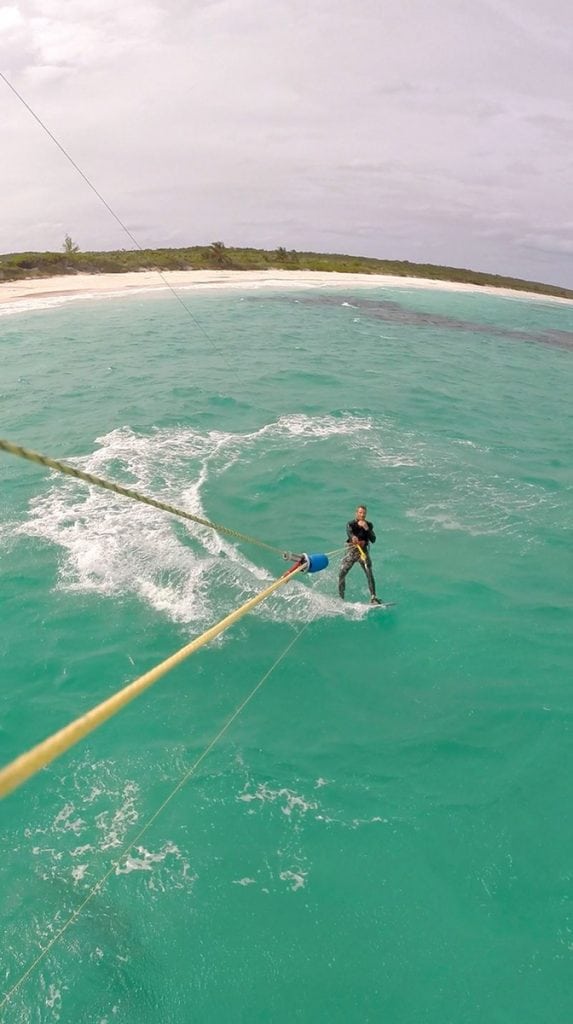 Sailing at night is a favorite pastime for Royston McGregor, a sailor and marine salvager living in Exuma. Once he has more than a half a moon and the waves are not high, he’ll be out in the harbor running sprints or playing in bigger waves near the harbor’s eastern entrance. As a local, he has the advantage of extensive inside knowledge. “The harbor has different sections, different depths and different wind conditions. Between the mainland by February Point and Crab Cay, there is a flat stretch of shallow water that is usually calm even when it’s windy,” says McGregor. “The Exuma Sailing Club uses that to practice. That’s where I like to do sprints. Windsurfers and kitesurfers also like the area for the same purpose. It is shallow enough for kite surfers to stand at low tide, which makes it great for learners.