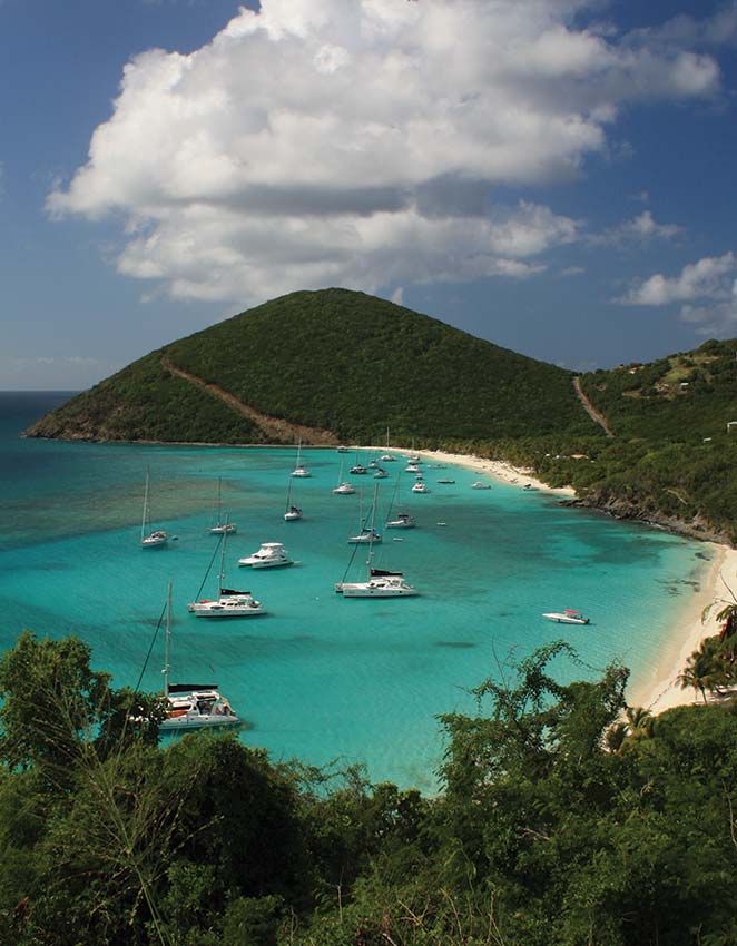 A shallow reef protects charter boats moored off White Bay on Jost Van Dyke.