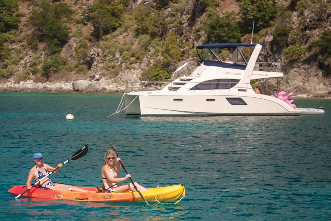A MarineMax BVI Getaway enables MarineMax dealers to offer group boating vacations to their customers so that they can experience new and exciting places and connect with others who enjoy the boating lifestyle. “The B.V.I. is a preferred location and our fleet has 32 powercats and 4 monohull sailboats,” says Harry Mountain, Logistics & Operations manager of MarineMax Vacations and Aquila boat sales based in Clearwater, Florida. One of the competitive advantages of MarineMax charters is that Wi-Fi is included on every boat. “It really enables people who are tied to their jobs to stay in touch with the office, reduce email when they get back from a trip and combine work with pleasure.”