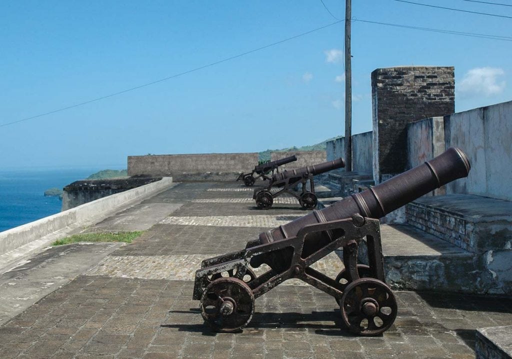 A nice place to catch a mooring before departing for points south is near Young Island at the bottom of St. Vincent. A nearby rocky pinnacle is home to the ruins of Fort Duvernette. Climb the 255 steps to inspect the cannons and the views from the top before getting under way.
