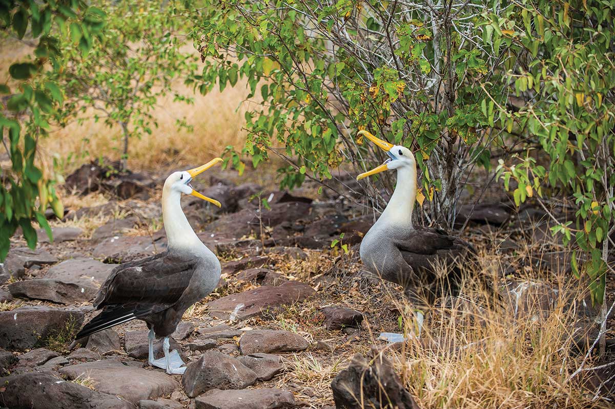 Gardner Bay on Española Island is one of the longest white-sand beaches in the Galápagos, and you’ll have complete freedom to explore it without a guide (but not into the desert beyond). Leave your boots but bring your hiking sandals, swimsuit, towel, and snorkel gear, and spend the morning swimming in this stunning bay with frisky sea lions. The next stop to nearby Punta Suárez includes hiking the 2.5-mile trail through colonies of blue-footed and Nazca boobies. Near the high sea cliffs, you should pass some of the 12,000 breeding pairs of waved albatross. From April to December the babies are learning to fly, an amazing and amusing sight.
