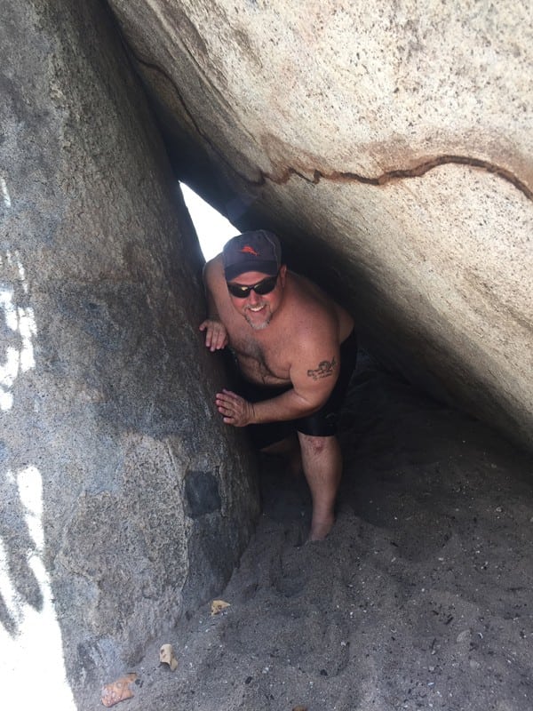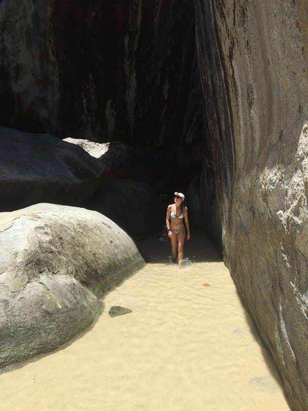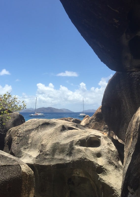 Our first stop was Virgin Gorda to see The Baths. The gargantuan boulders lie on the sands like marbles a giant left behind. Our first suggestion to everyone visiting The Baths, is to make sure you pick the right spot to start exploring. We made the mistake of unloading all of our gear too far north and ended up having to do a lot of extra swimming to circumvent some of the spots with boulders. The only way we would have been able to get around was by jumping from boulder to boulder (!). We could have stayed there all day, it was stunning.