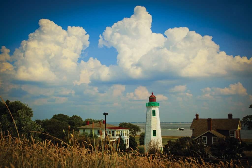 The commodore of Old Point Comfort Yacht Club, Bob Killebrew, provides helpful local knowledge. “There are no particular hazards in the waters of Hampton. The ship channel is 65 feet or more and average depth within the Roads is around 20 feet.” He adds that there are some bars to be aware of, but channels are well-marked with day beacons. Currents can be tricky past Fort Monroe during the outgoing tide (2-3 knots) and between forts when the tide is coming in and the river is flowing out. Local sailors avoid coming directly into the Hampton Bay Channel and “creep along the shore past Fort Monroe, then skirt around the corner into the Roads.”