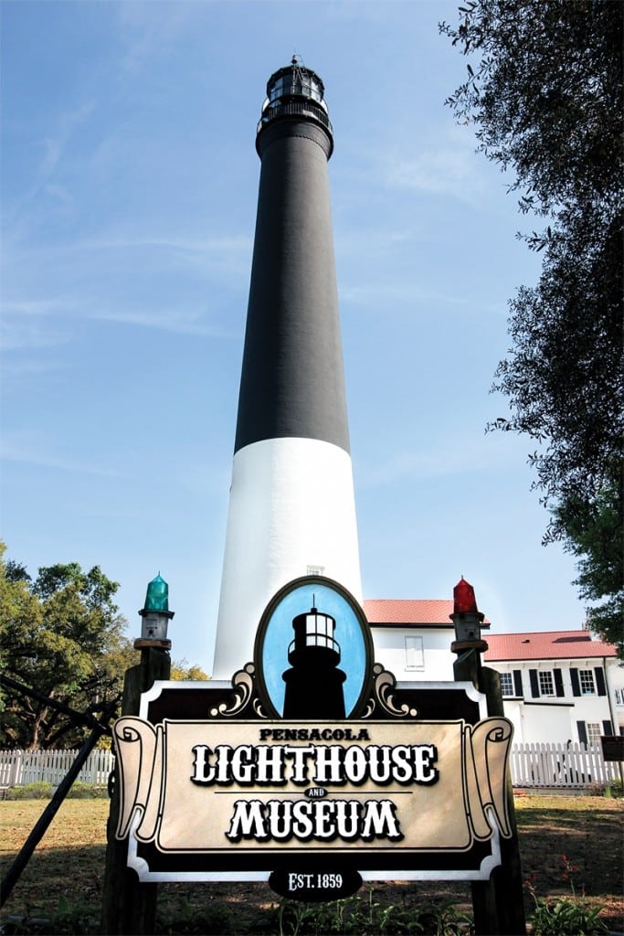 Only a few minutes away is another landmark, the Pensacola Lighthouse. Completed in 1859, the Pensacola Light has withstood wars, hurricanes and even an earthquake in 1886. The distinctive paint job—the bottom third is white and the top two-thirds is black—makes it clearly visible for miles. A small admission fee allows you to climb the 177 steps to the top of the 150-foot-tall tower, where you’ll have spectacular views of Pensacola Pass, downtown Pensacola and the base itself. You’ll probably see planes flying past, perhaps even the Blue Angels! The lighthouse is open seven days a week from 10AM to 5:30PM. pensacolalighthouse.org