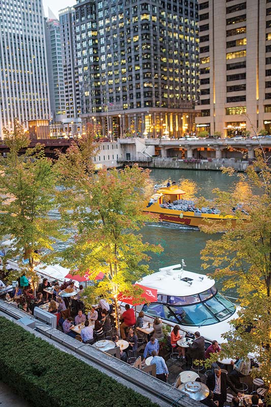 For the most part, where you dock is determined by how close you want to be to your favorite activities. The Chicago Harbor System has 10 unique harbors, some of which are along Chicago’s lakeshore and each with its own distinct attributes. All offer transient dockage; several offer boat ramps and trailer parking for those traveling with boats on trailers. Be sure to review the System’s website and make your reservations well in advance, especially for holiday weekends that attract Midwest cruisers from 100 miles away or farther (chicagoharbors.info). An alternative to the large lakeside marinas is Marina City on the Chicago River in the heart of the city’s action. Again, make reservations well in advance for the few transient slips located under the famed steakhouse Smith & Wollensky. This is also a great location to get off the boat for a few nights since the Marina City complex houses Hotel Chicago (an Autograph Collection Hotel). Request a room on one of the upper floors to enjoy a spectacular nighttime view of the city.