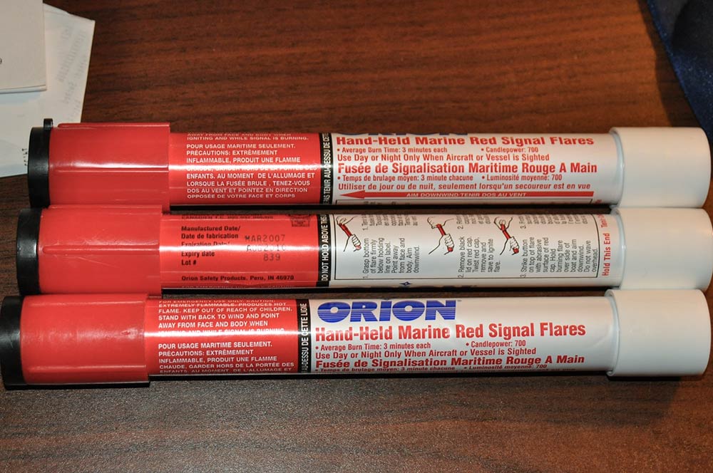 To meet the requirements of all U.S. Coast Guard regulations, vessels are mandated to carry at least the minimum safety items such as proper nav lights, fire extinguishers or automatic fire suppression system, a PFD—Personal Flotation Device, or life jacket—for each person on board, a throwable device such as a seat cushion or life ring, a bell, whistle, or horn for signaling, and visual distress signal flares. As these requirements differ depending on the size of your boat, check with a copy of CG 169—usually available at your marina store or other outlets—to make sure you are in compliance. (Checking in with your local Coast Guard station or auxiliary unit or setting up a complimentary safety inspection with them are also good options.)