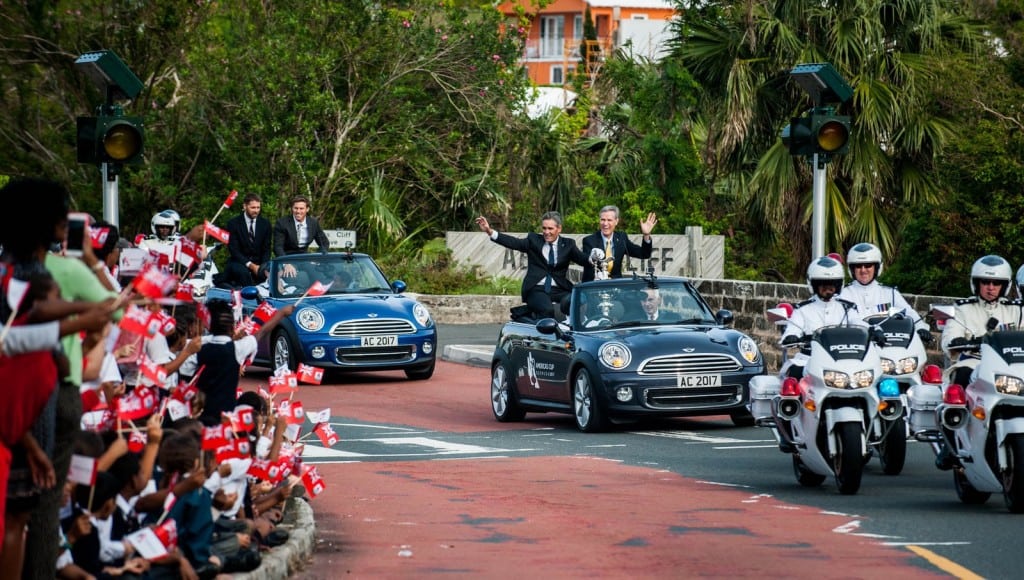 The venue is Great Sound near the city of Hamilton in Bermuda. This summer, Oracle helmsman, Jimmy Spithill, will defend the trophy for the Golden Gate Yacht Club against challenging clubs that hail from seven countries: Italy, Australia, Sweden, New Zealand, Great Britain, France, and Japan.