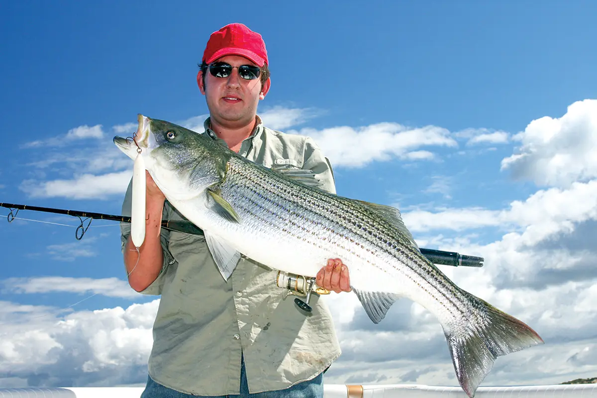 Arden Gardell didn’t need to be told twice. Within seconds, he had a long, thin-profiled “spook-style” surface lure in the air and heading for the breaking stripers. With a few deft jerks of the rod, the big, white, tubular lure zigged and zagged across the surface. It didn’t get halfway back to the boat before a slot-sized striper gave it a slam.