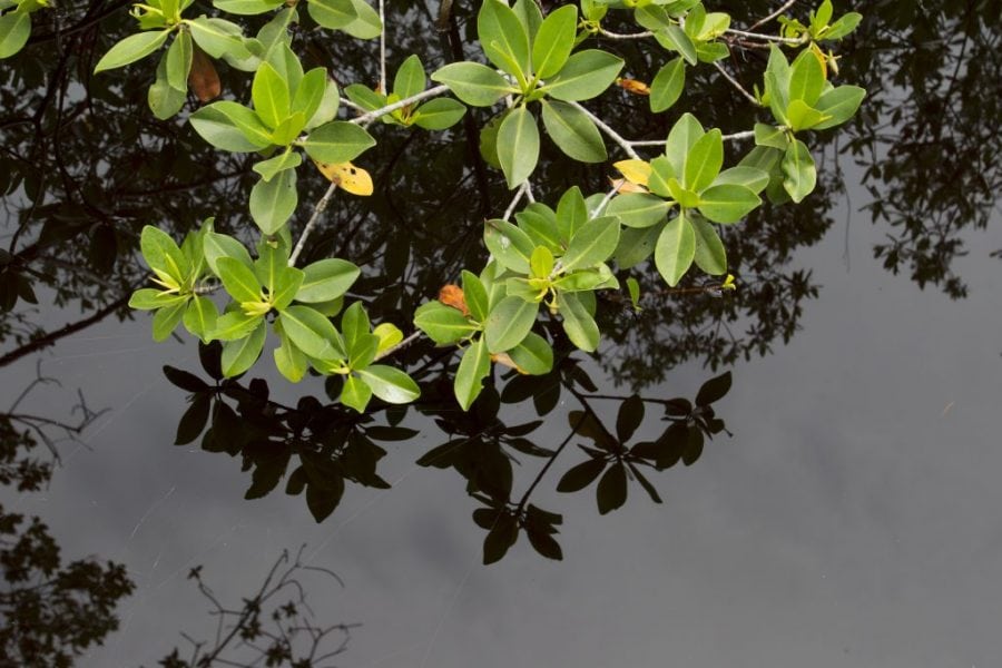 We walked away from the Welcome Center and immediately entered the mangrove wetland, which includes a man-made limestone waterfall. There are no natural waterfalls in The Bahamas; this one was built primarily to help aerate the water. The mangrove wetland contains all four local mangrove species: red, black, white, and buttonwood. A variety of wildlife lives among the roots and foliage of the mangroves, including crabs and juvenile fish that find protection within the dense thicket of roots. Bird species found here include the green heron, yellow warbler and grey kingbird. The convoluted root systems trap organic debris, creating soil and helping to protect Bahamian shorelines from storm waves.