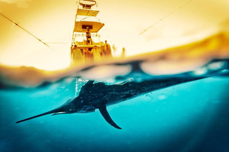 KD: The shots that I am most proud of are my swordfish shots because they are so dangerous and very hard to find. They are the meanest animals I have ever seen and most of the time will try to attack me. Recently a swordfish tried to kill me by spearing me in the chest. I grabbed his sword, pushed it down between my legs and grabbed the other end of his sword as it goes into his head and pushed him off after he charged me. I was beyond fortunate and knew I had escaped death. When I finally got into the boat I realized that I had a hole through my shorts right between my legs! I now have these shorts in a box frame and love to see people’s faces when I tell them this incredible story while they stare at the ripped shorts.