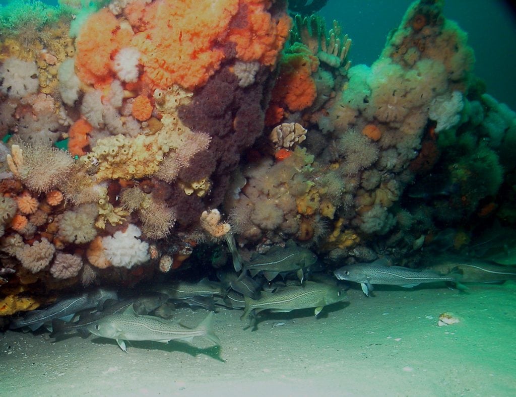 In fact, every state from North Carolina through Florida and around the Gulf Coast to Texas has an AR program. With more than a thousand miles of coastline, Florida leads the way in AR establishment with over 3,000 manmade reefs. In the Gulf of Mexico, hundreds of oil and gas platforms have been converted into ARs. Apparently, the bases of marine wind turbines will also suffice. Probably the best-known ARs have been made from sinking now-obsolete ships. The largest of these was the U.S.S. Oriskany, a 44,000-ton aircraft carrier sunk in 200 feet of water some 24 miles off the coast of Pensacola, Florida, in 2006.