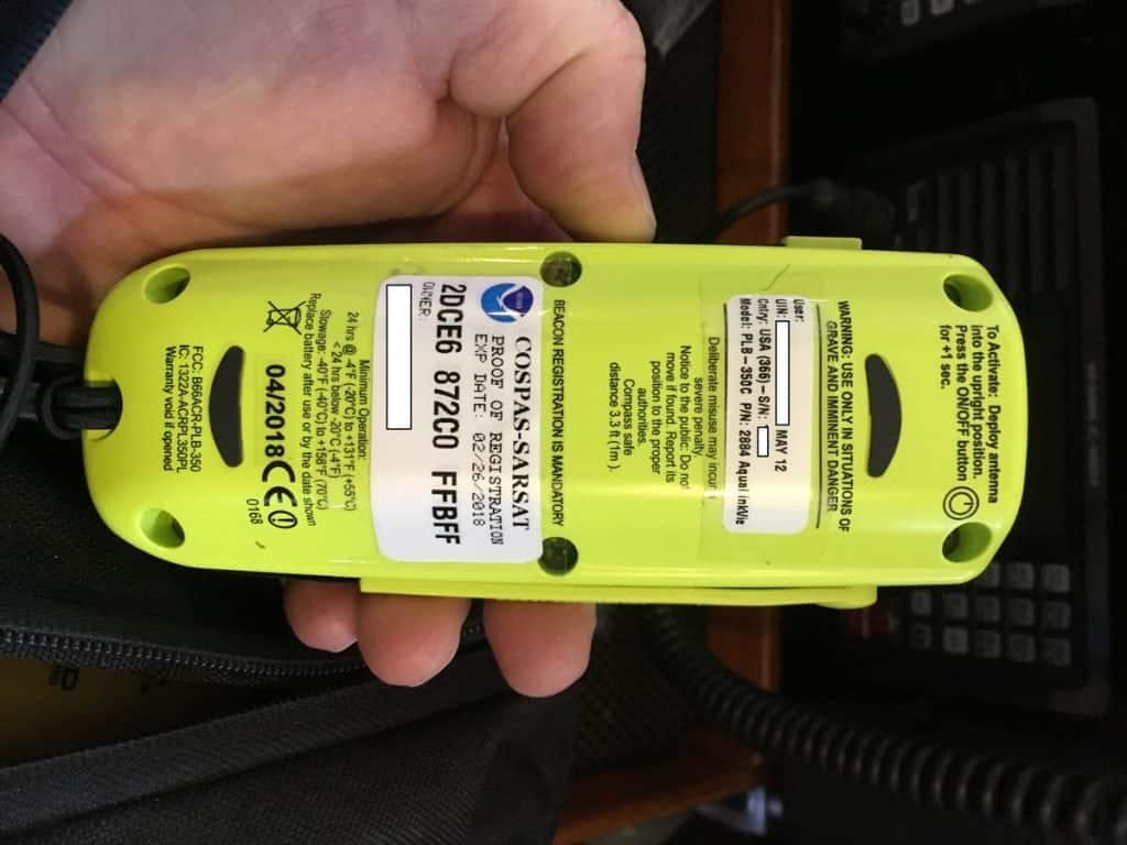 Unlike a PLB, which is registered to a person, an EPIRB is registered to a specific vessel, which means you can’t legally take it with you to use onboard another vessel.