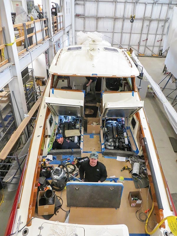 The boat was built in 2004, and its twin 440-hp Yanmar diesels had 1,000 hours. “I was worried about the engines running into some issues,” the owner said. “Age wears parts like belts, hoses, fluids, and filters. When that occurs there may be mechanical areas of the engines which suffer but go undetected until they fail.” He also wanted to add 3 knots to the boat’s top speed of 33 knots.