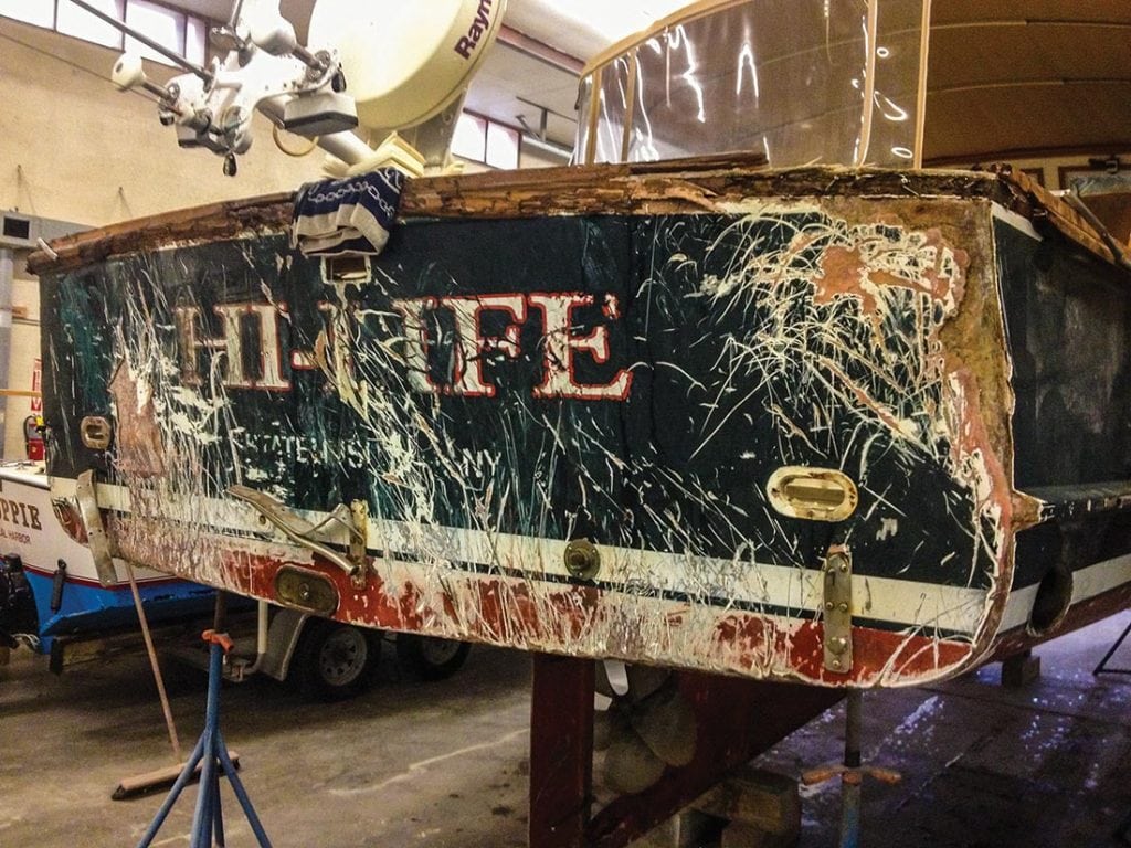 Swedberg and his wife Jean didn’t want to walk away from boating. He had just sold the marina where they kept the boat a few years earlier and had planned to use the Wilber as their retirement boat to fish for stripers and cruise the Jersey Shore and Long Island Sound. And they loved Hi-Life, a classic 1996 Wilbur 34 Downeaster soft-top express with a single 350-hp 3116 Cat diesel. “It was in impeccable shape,” Swedberg said. They could have used the insurance money to buy a new boat, but what they wanted was their old boat put back together again, so they bought Hi-Life back from the insurance company.