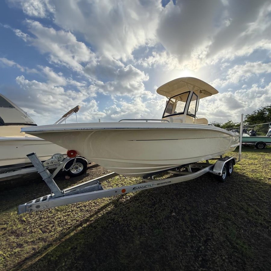 The 215 XSF is built on Scout’s revolutionary fuel saving NuV3 hull design, while the deck offers ample standard amenities for everything from serious fishing to comfort cruising. Built with 100% hand-laid fiberglass, the boat boasts a wide comfortable beam of 8’ 6” with an overall length of 21’ 6”. A notable standard feature onboard the 215 includes not only the forward seating in the bow, but also a forward sun lounge/coffin box complete with a cushion.