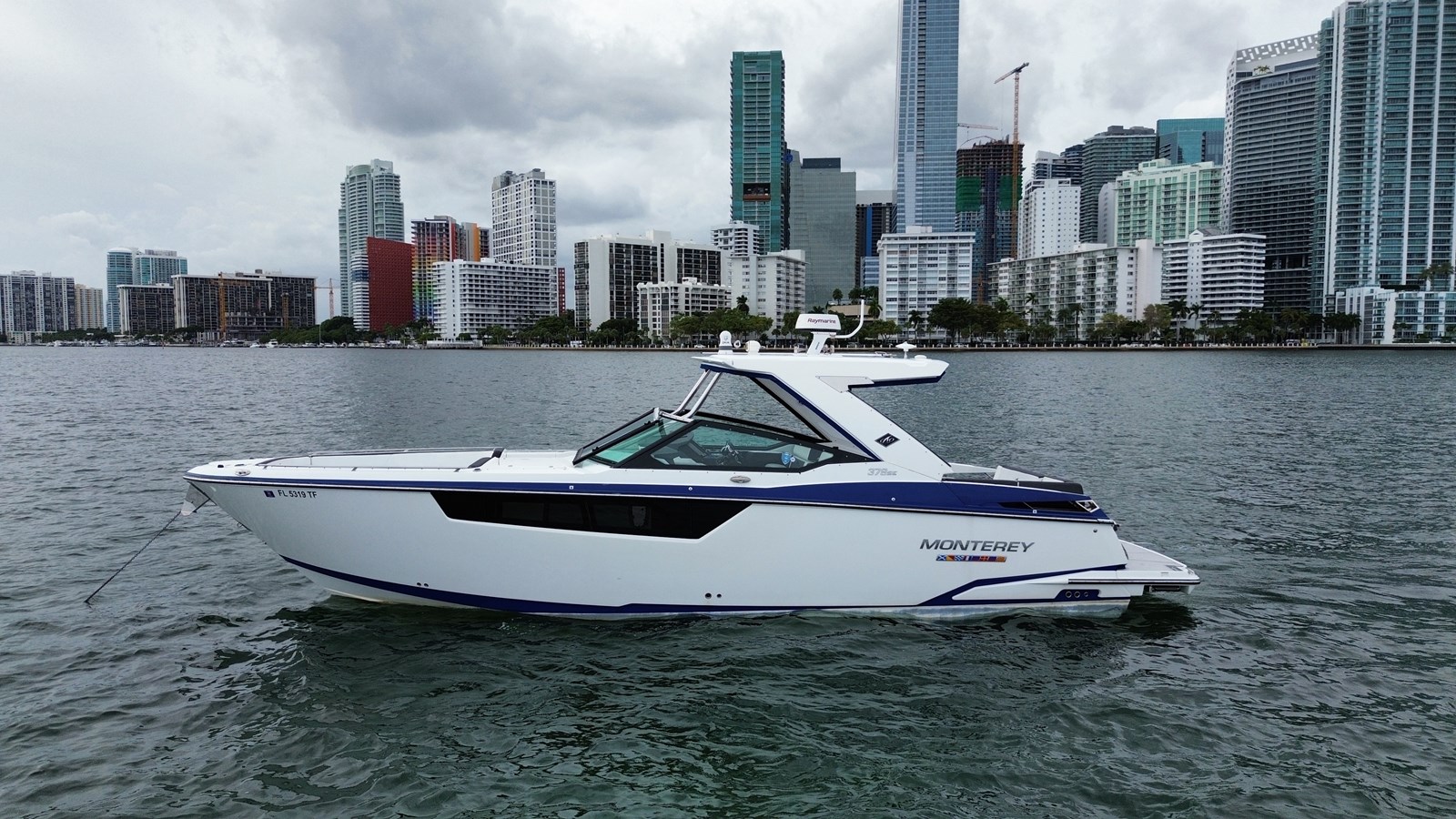 Experience the ultimate blend of performance, luxury and day-yacht comfort in this stunning Monterey 378 Super Express. With a sweeping profile and a massive cockpit made for entertaining, this boat delivers both thrills on the water and refined comfort below deck.